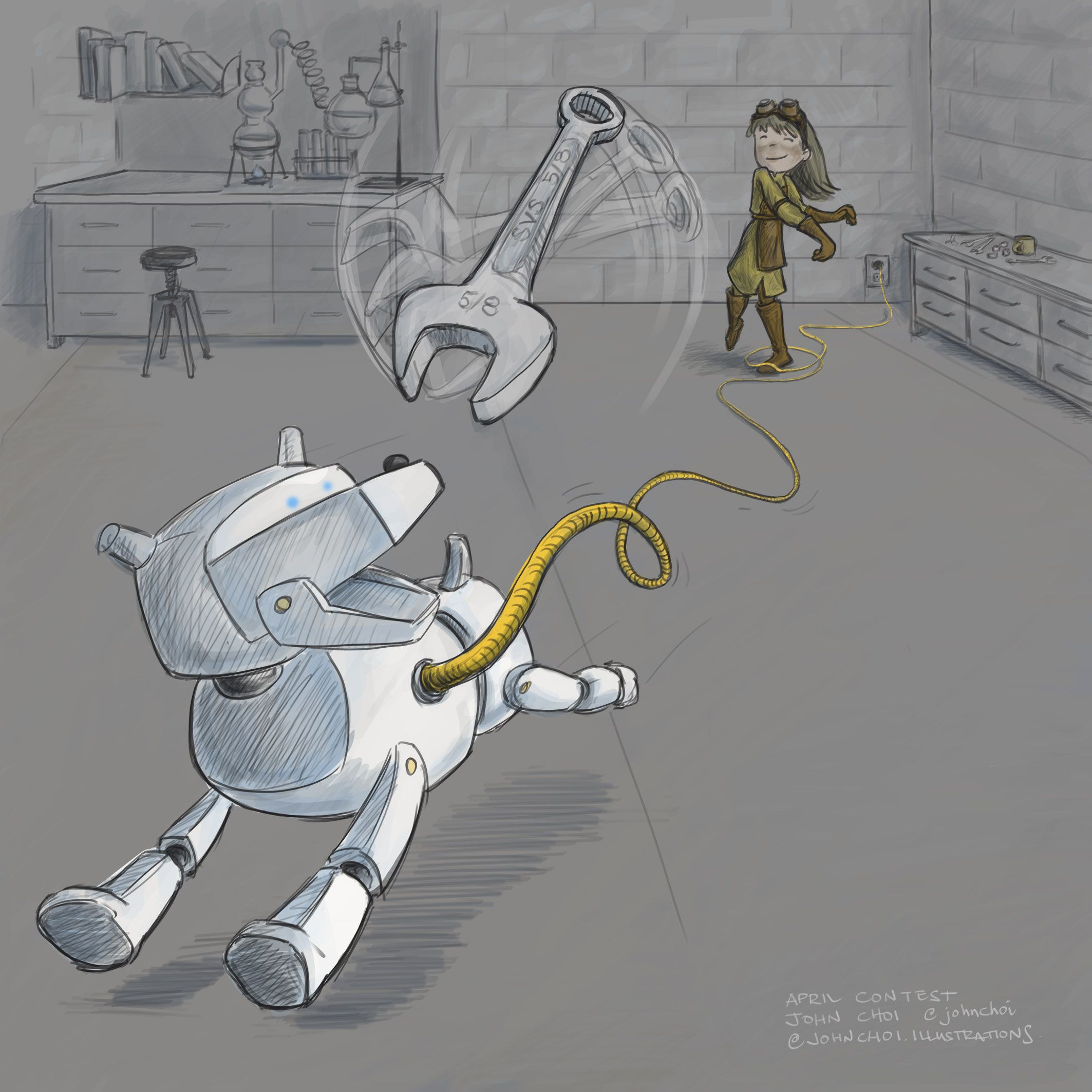 It was a fun challenge. I wanted to try loosening up more and I wanted to see if I could come up with a narrative that was about a robot but didn't show a robot.
